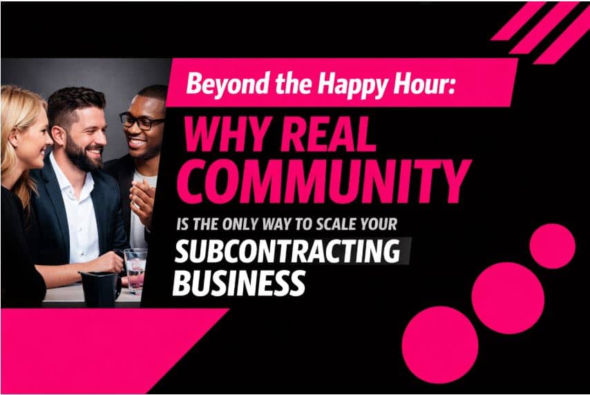 Beyond the Happy Hour: Why Real Community is the Only Way to Scale Your Subcontracting Business Letโs be honest about the "networking" scene in construction. You know the drill. You put on the slightly-too-stiff blazer, drive (or fly!) to a mid-range hotel ballroom, and in between sessions you're playing a high-stakes game of "who can collect the most glossy business cards." You talk about the weather. You talk about the local sports team. You might even talk about "the market." Then you go...